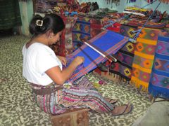 Mais le temps est venu de sortir Anegada de l'eau au chantier Magdalena. Nous en profitons pour faire une escapade de deux jours au site de temples mayas de Tikal. Quatre heures de bus local aux sièges bien défoncés et courant d'air remplaçant la clim (mais il ne fait pas chaud !!!) nous amènent à Flores, une presque-île sur le lac Peten. Les maisons nous font penser à Trinidad de Cuba. Basses, colorées, une sur deux abrite un restaurant, une boutique ou une agence touristique. Le tissage est l'artisanat principal du pays et je craque pour le tissu des jupes typiques des indiennes quechi. Je sortirai la machine un jour pour m'en faire deux coussins !