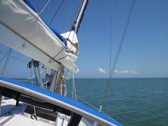 Je cherche les tables de marée sur internet et me rend compte qu'elles sont très faibles. Les plus hautes en février varient entre 1 pied et 1,6 pied. Je fais de savants calculs au millimètre près pour me persuader que la marée du 8 février, de 1,25 pied, sera suffisante. Un peu inquiète tout de même (quand nous nous sommes plantés à Cuba, l'an dernier, il m'avait semblé que notre sillon était à un peu plus de 2m. Nous sommes peut-être un peu chargés... et enfoncés), j'essaie de vérifier notre tirant d'eau avant de quitter Utila. Pierre sort le plan du bateau pour vérifier la hauteur de la ligne de flottaison, sans succès. Par contre, sur le propectus du bateau, il découvre avec stupeur que le tirant d'eau indiqué pour la version quillard du Sun Kiss est de 2m10 ! Notre immatriculation, copiée sur celle des anciens propriétairtes, est fausse ! L'aventure se corse !