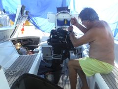 Entretemps, le moteur de l'annexe fait des siennes et reste à plein gaz ! Démontage, nettoyage... Et on peut enfin mettre pied à terre et visiter un peu Barahona qui nous enchante rapidement par sa vie, son animation (pour ne pas dire agitation !), ses odeurs (pour ne pas dire plus !), sa musique (pour ne pas dire son brouhaha !). Je raconterai cela plus tard !