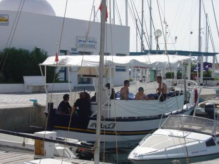 Nous avons pris un autre rythme en Tunisie et particulièrement à la marina de Monastir. Nous avons laissé Anegada I puis II respectivement en 97-98 et en 03-04 dans ce port et nous l'avons rejoint à chaque occasion, soit en automne, à Noël, à Pâques et en été. C'était à chaque fois un dépaysement tant physique que culturel. Les tunisiens sont accueillants et souriants. La marina est bien organisée et sûre. La ville se trouve à cinq minutes de marche du port. L'ambiance, les couleurs, le bruit, les odeurs du marché quotidien sont extraordinaires et c'est un plaisir d'aller y faire ses courses. On n'y trouve que des produits de saison. Cela change de nos supermarchés et met du piment (c'est le cas de le dire) dans la manière de cuisiner : obligation d' adapter les recettes aux achats du jour.