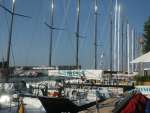 Nous profitons d'un jour de temps couvert pour faire une halte dans la marina de Palma. Il y a même une connexion sans fil pour que je puisse mettre cette première page en ligne. Nous avions l'impression d'avoir un gros bateau, mais ici, il paraît tout petit. Nous sommes les bohémiens de la marina ! La Copa del Rey a lieu en même temps et nous en profitons pour suivre quelques régates et regarder ces magnifiques bateaux. Le gratin des navigateurs est présent : Russel Coutts, Paul Cayard... et le roi Juan Carlos. |